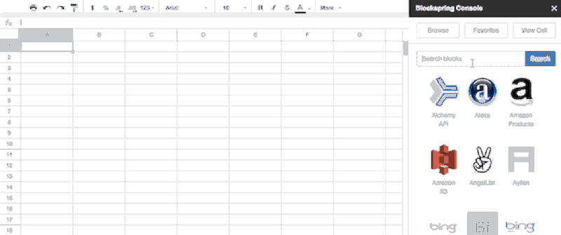 - Blockspring — Add dozens of API integrations in Excel and Google Spreadsheets. For example, you can make calls to Alchemy API for HTML/text classifications or to YouTube for video statistics. Check out thedocs for adding a custom integration.
